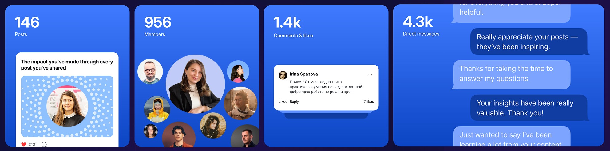 Само през 2025 в платформата се създадоха над 140 дискусии, хиляди коментари и реакции и повече от 4 000 лични съобщения между членовете. Проведохме и 40+ часа live срещи онлайн – уебинари, менторинг и отворени разговори. Това не са лайкове за алгоритъм, а реални диалози между хора, които търсят посока и подкрепа.
